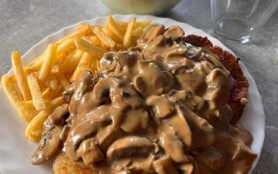 Hänschen Schnitzel mit Pommes und Rahm Champions Zutaten: – 4 Hänschenschnitzel – 500 g Champignons – 1 Zwiebel – 2…