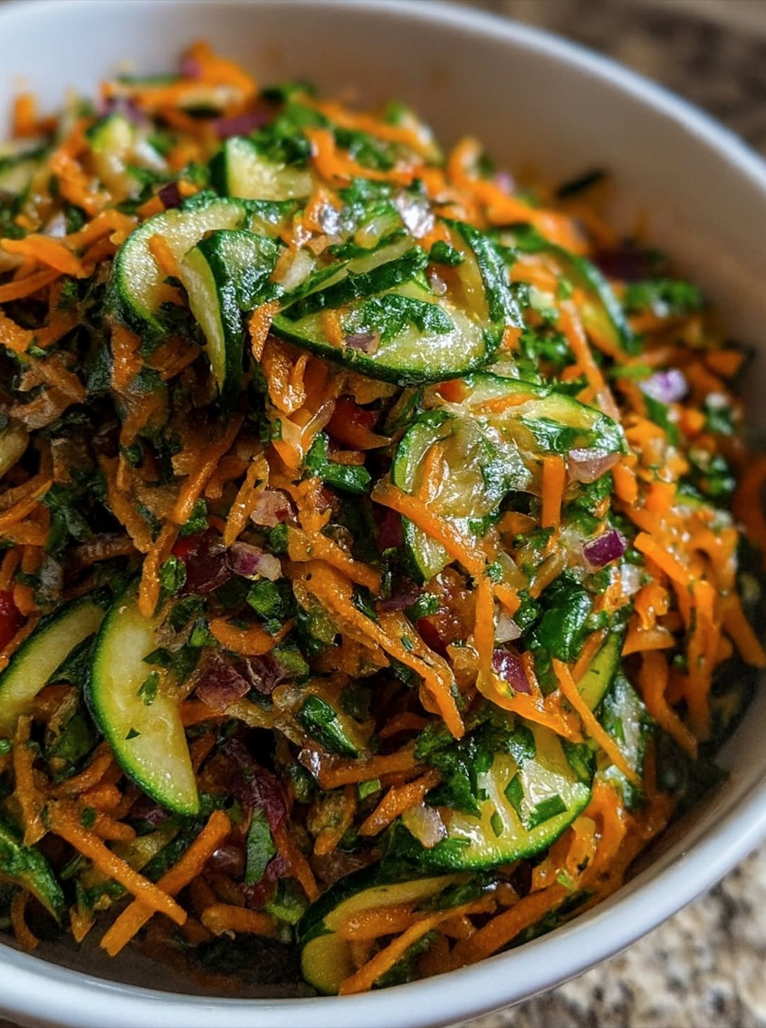 3 große Karotten, geschält und in feine Streifen geraspelt